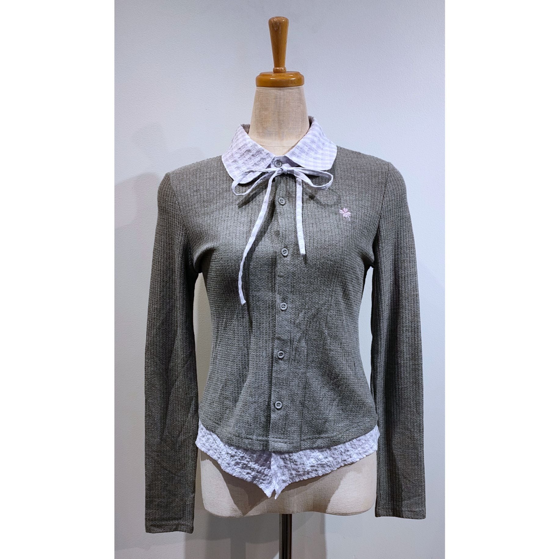 25373(2色)レイヤード風クローバー刺繍カットソー