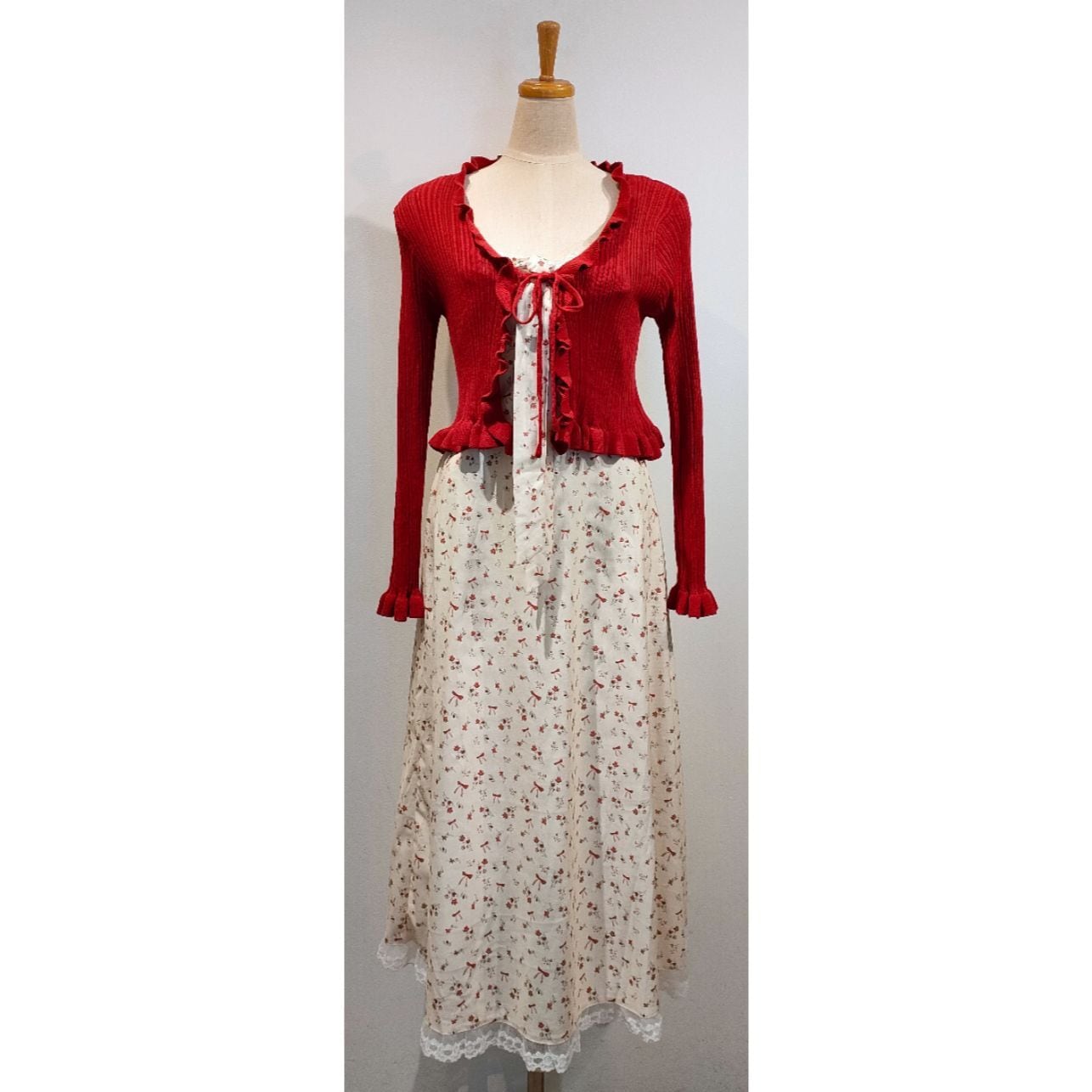 25360 フリルボレロ付花リボン柄キャミワンピース