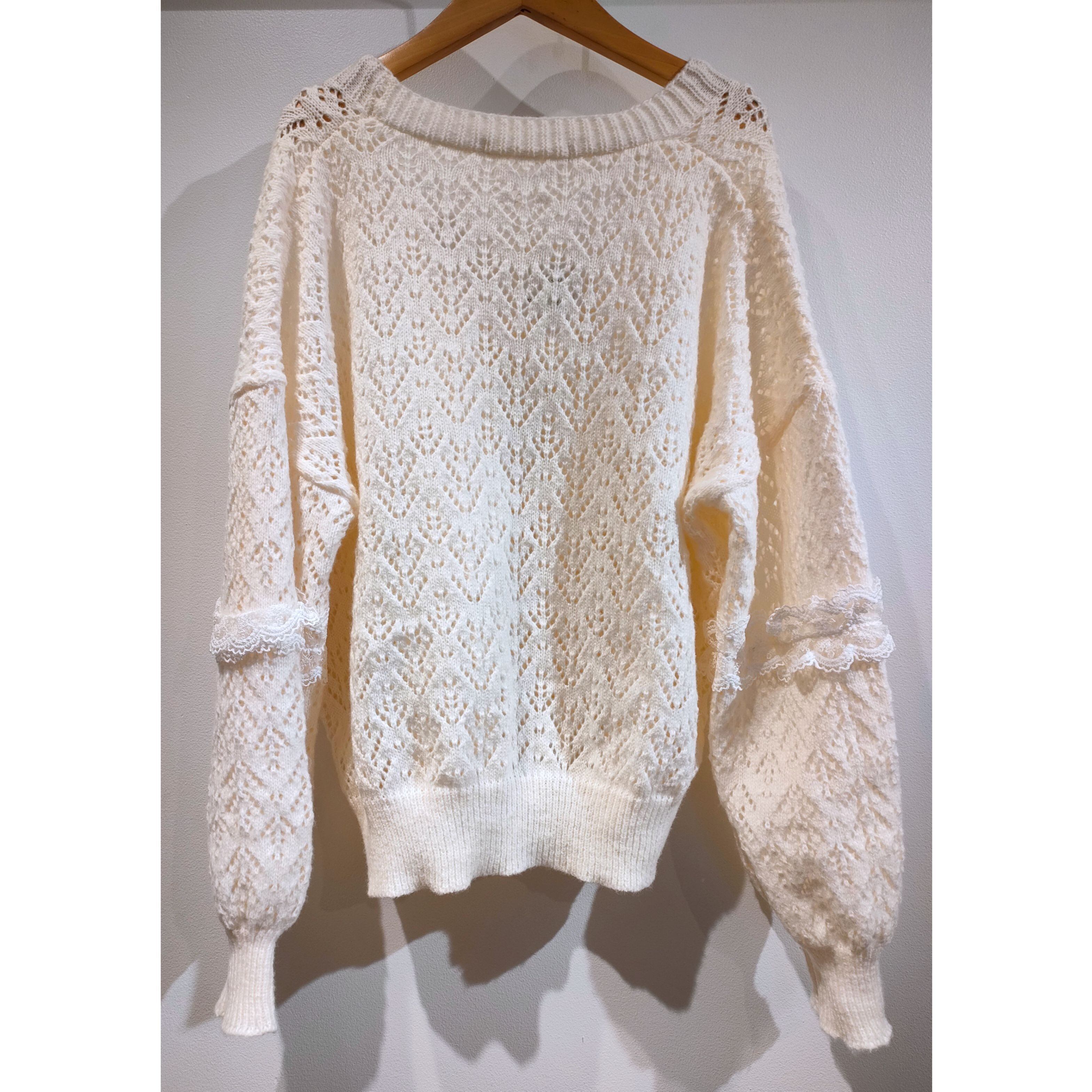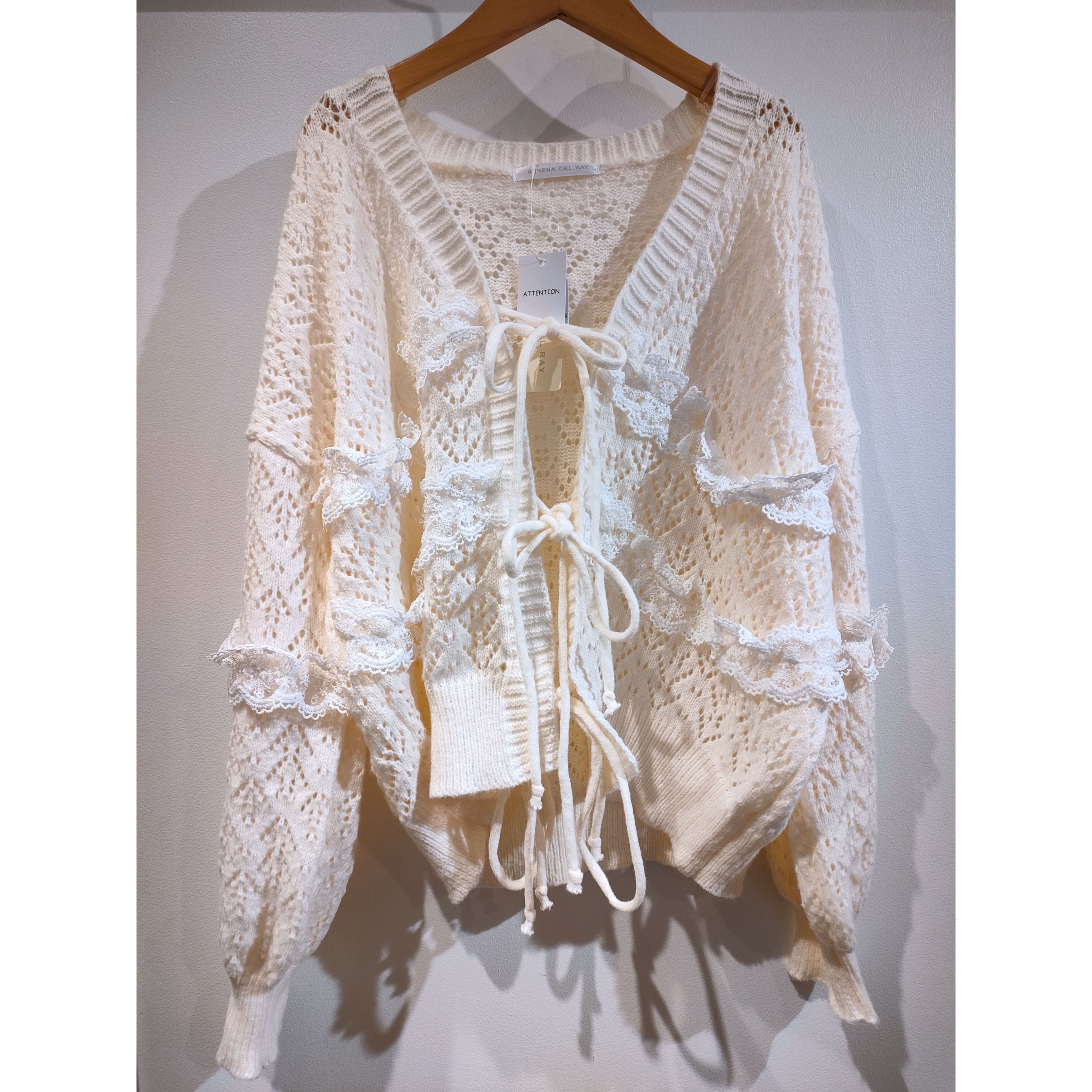 25354(2色)透かし編みレースニットカーディガン