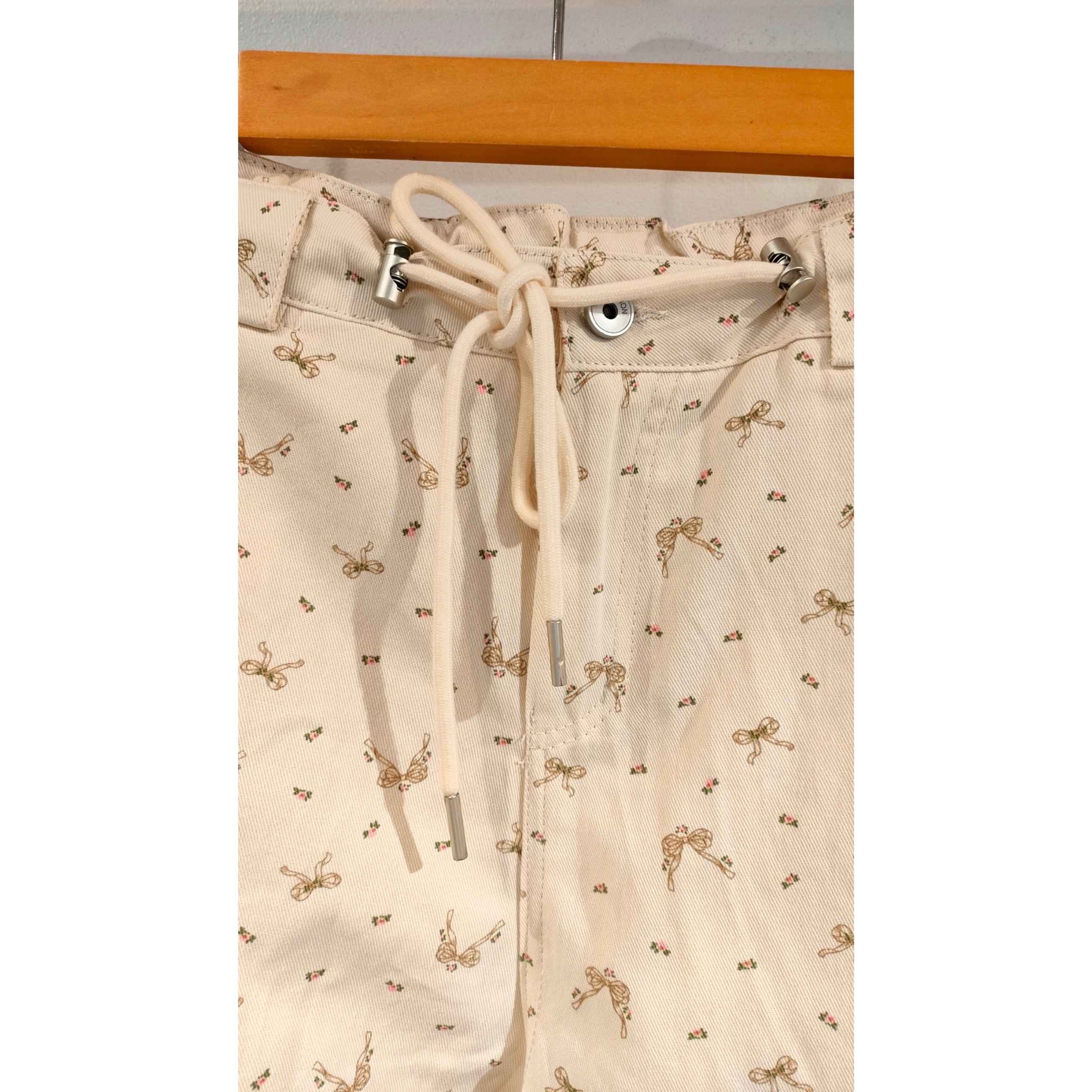 26001(2色)小花リボン柄デニムパンツ