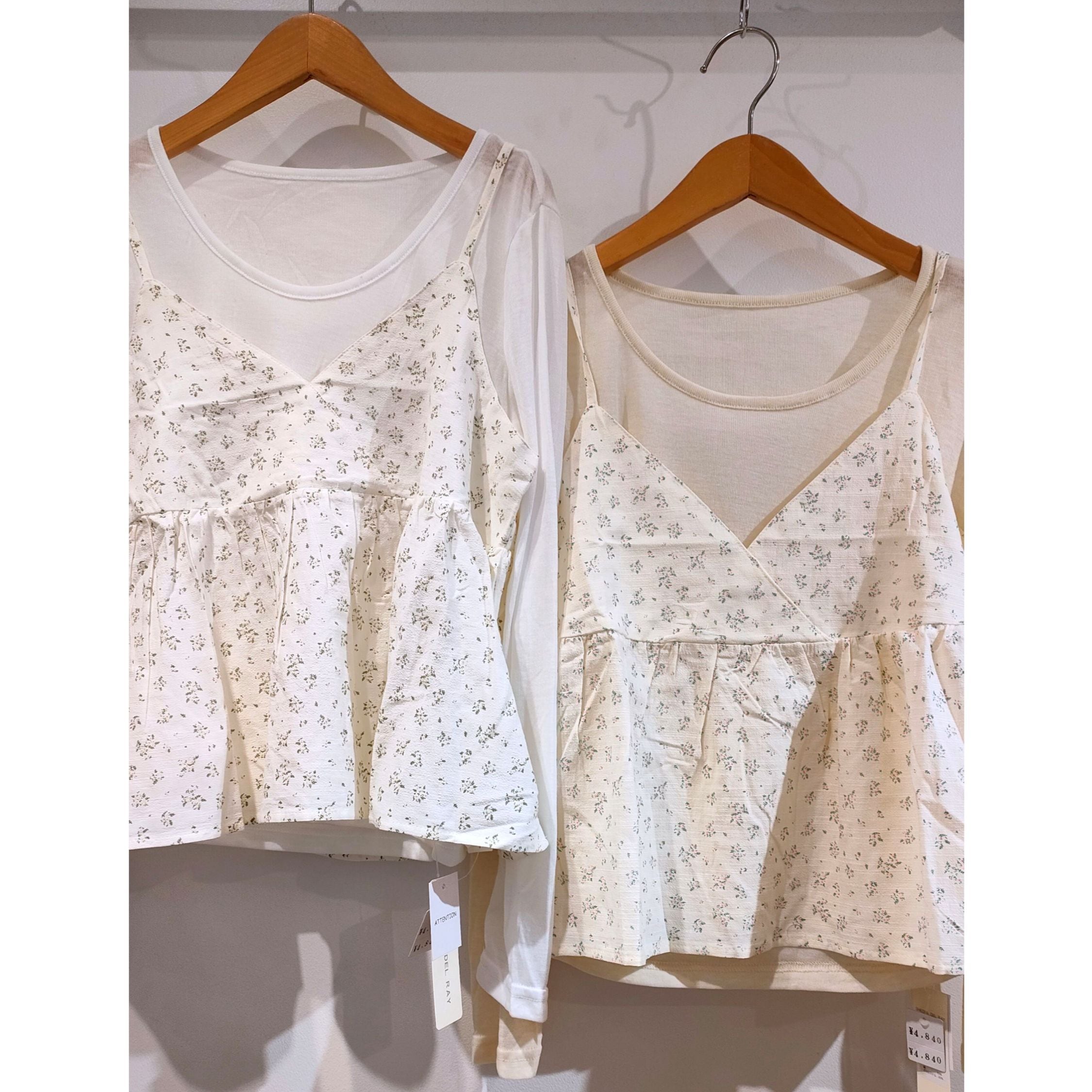 26046(4色)小花柄ビスチェ付シアーカットソー