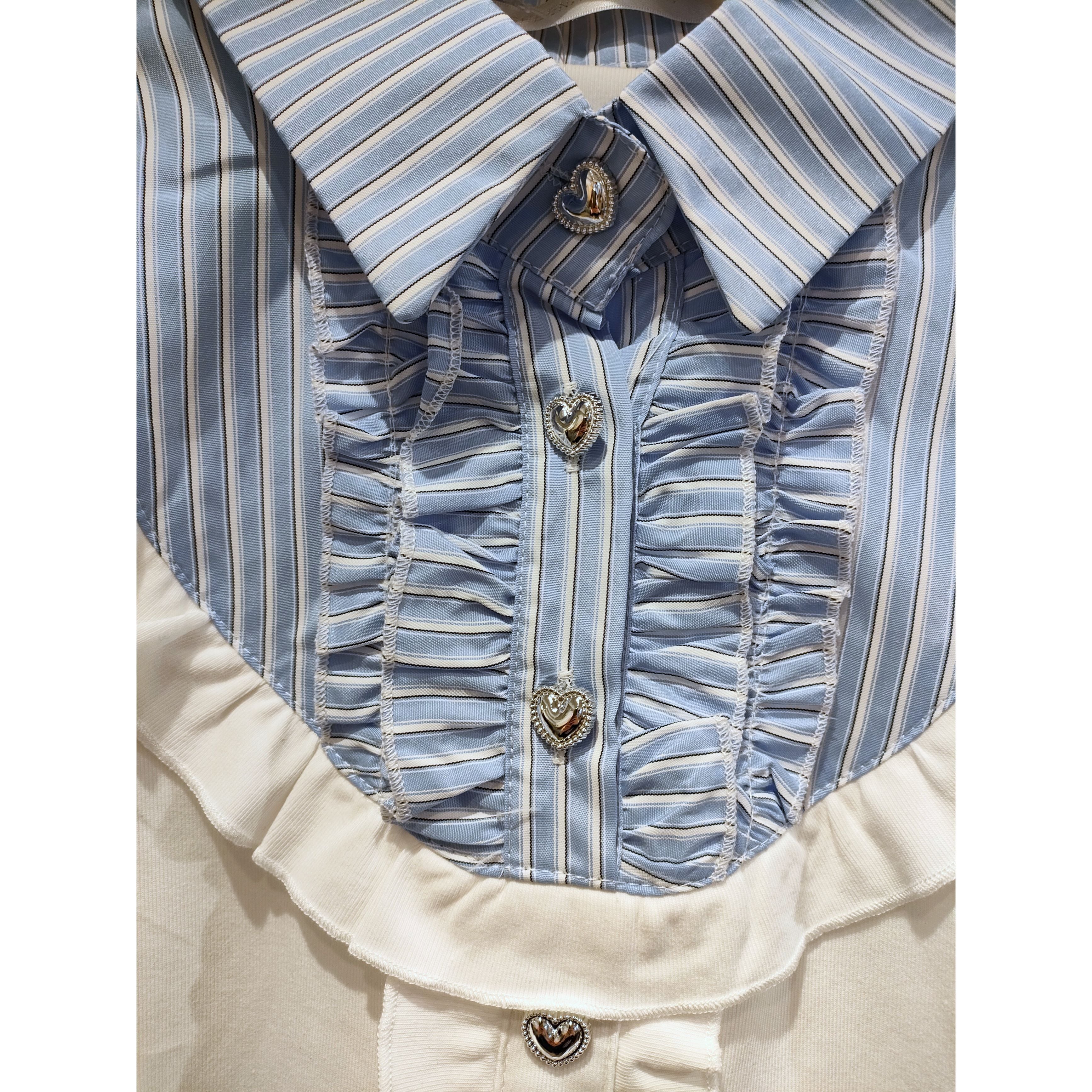 26049(3色)ハートボタンストライプフリルカットソー