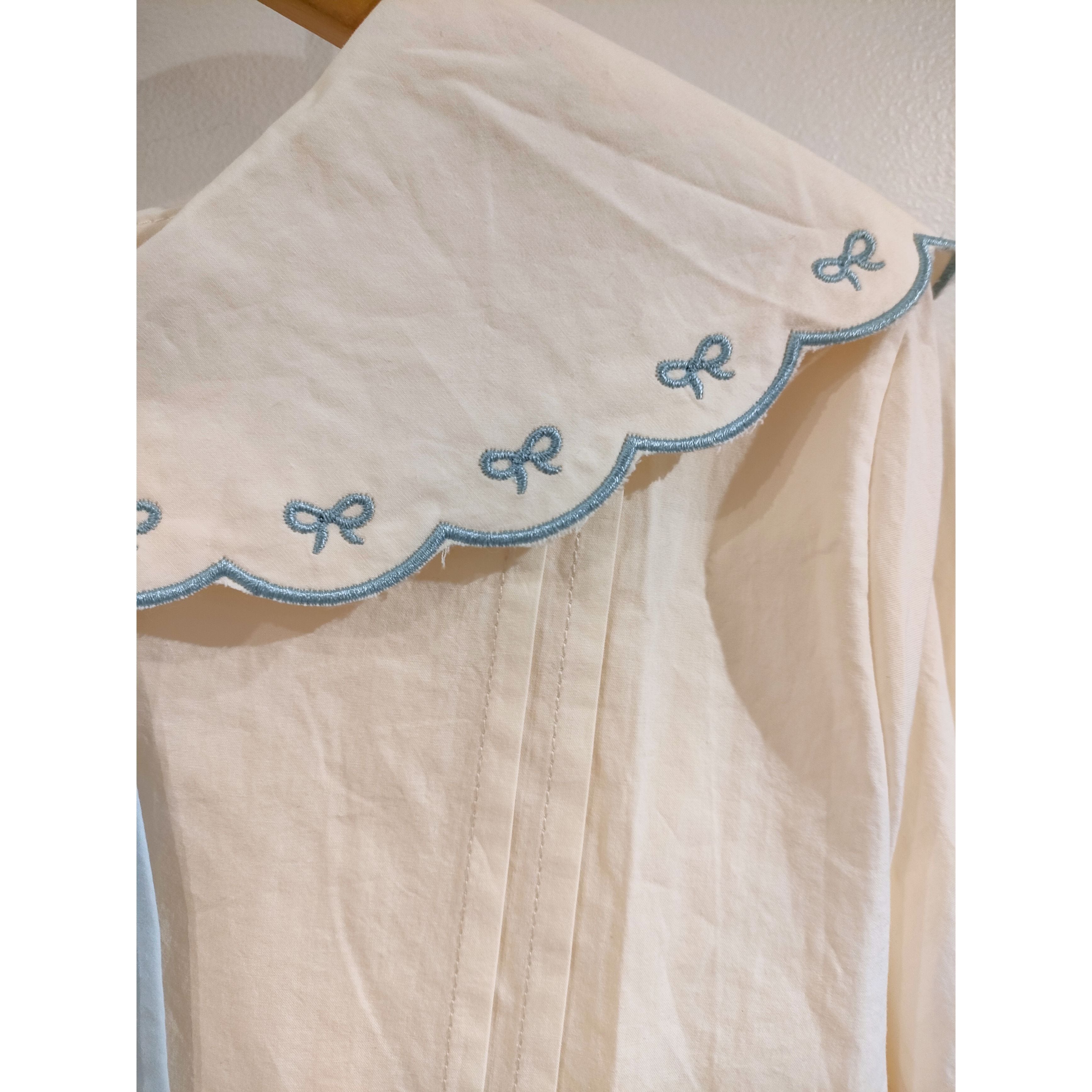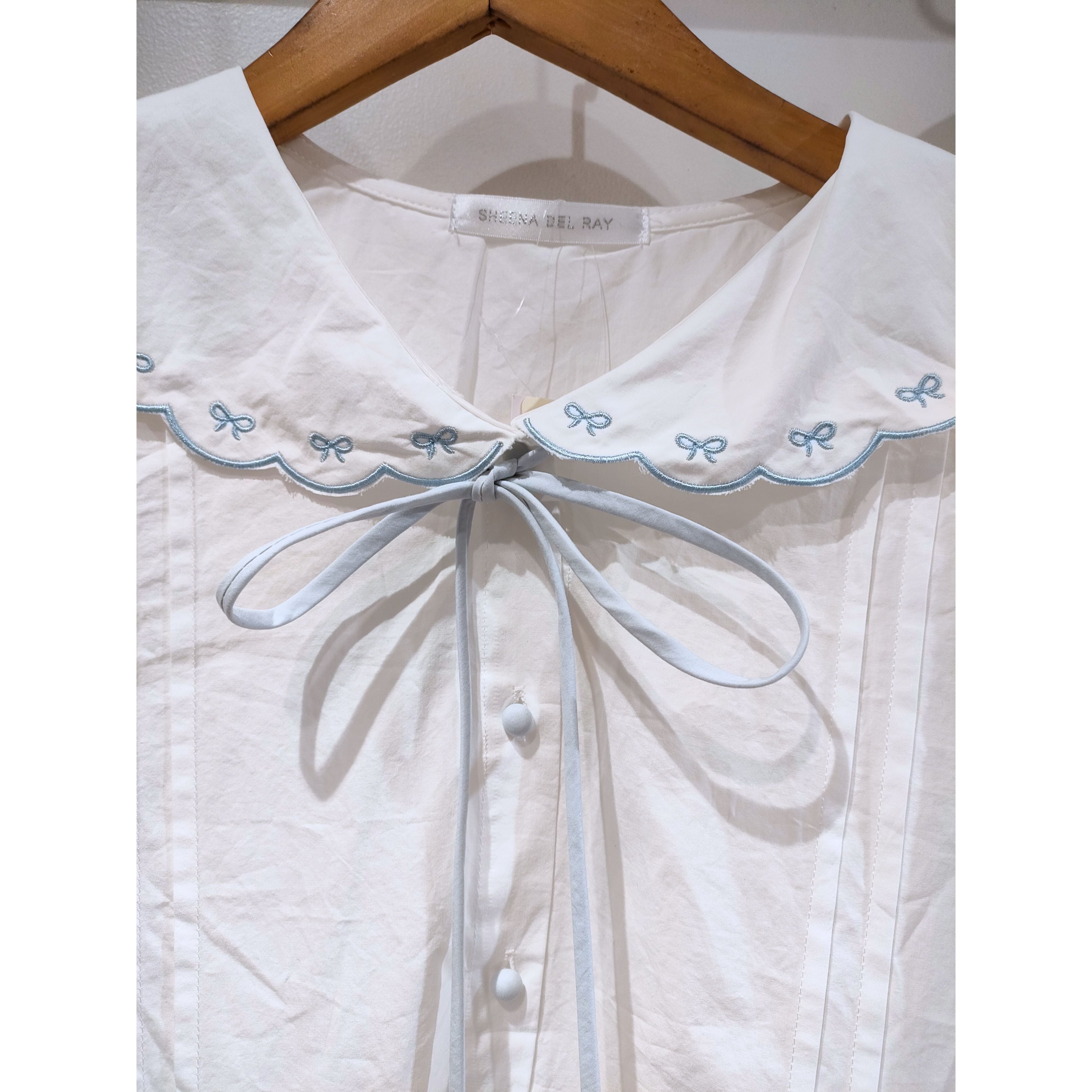 26017(2色)スカラップ襟リボン刺繍シャツ