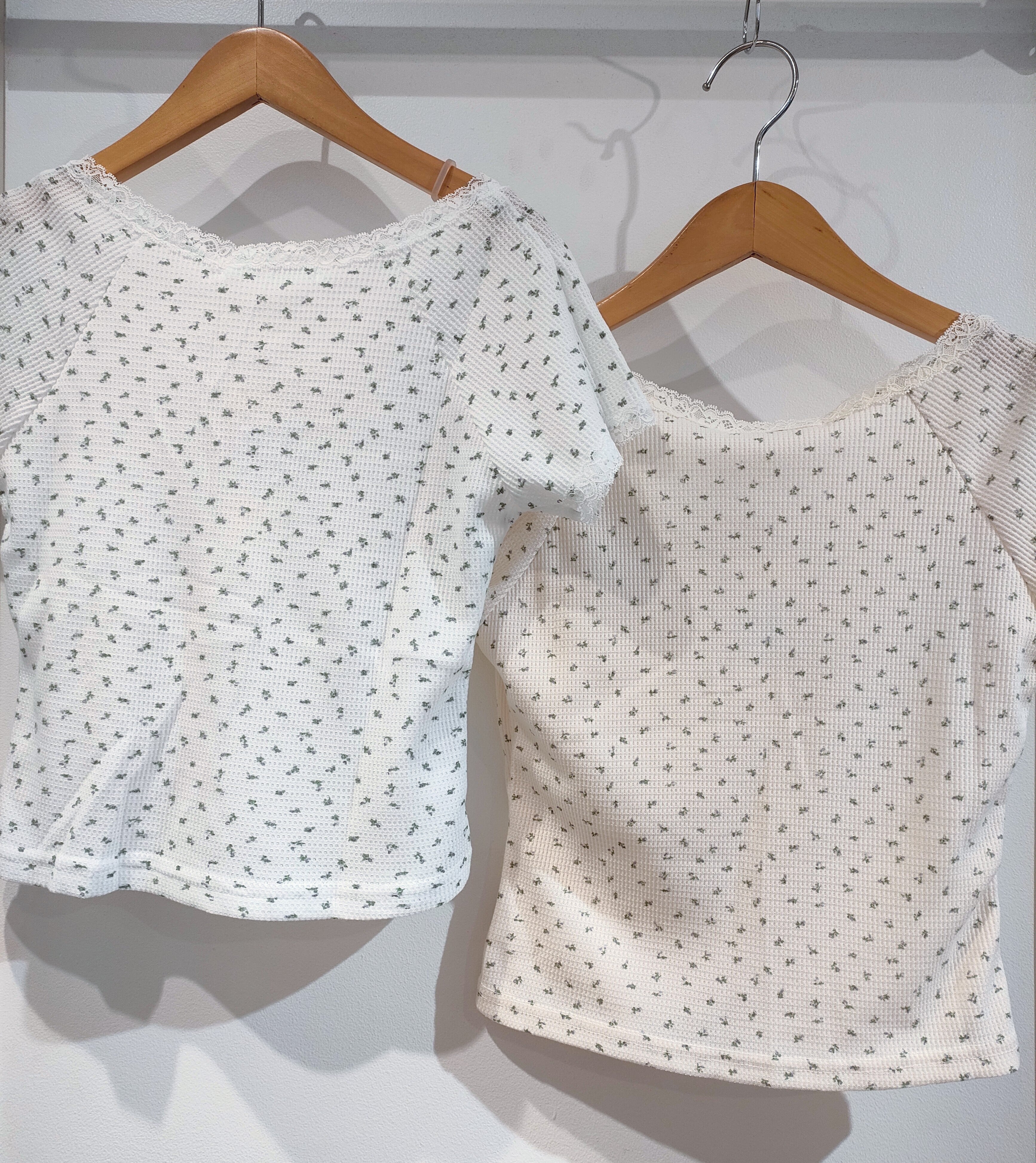 26125(2色)小花柄ワッフル地カットソー