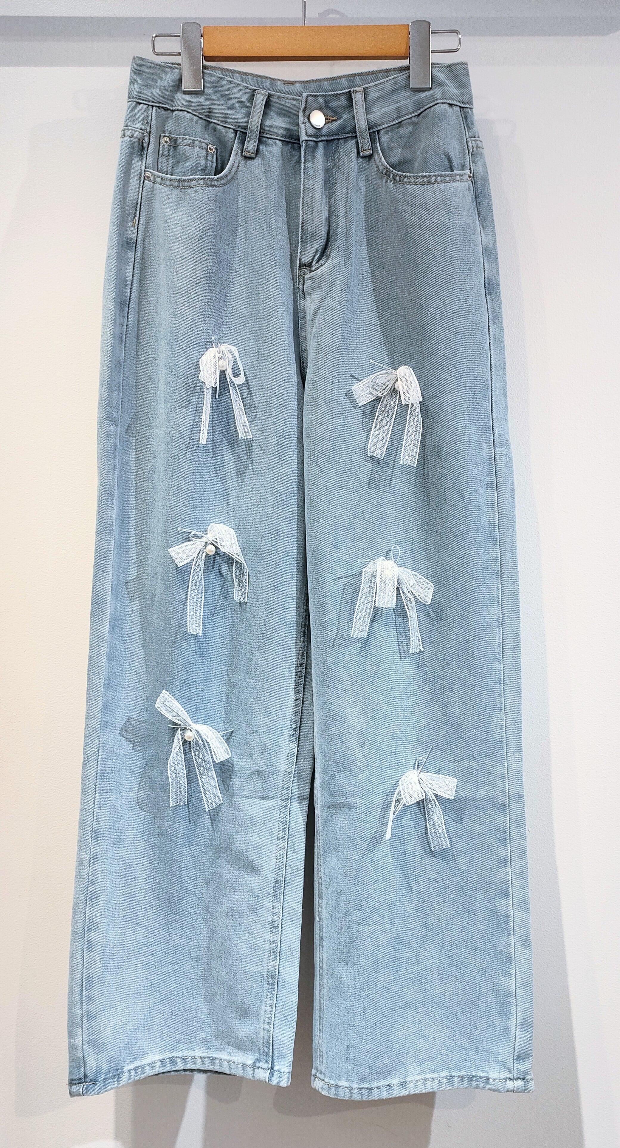 26197(ブルー)リボンパールデニムパンツ