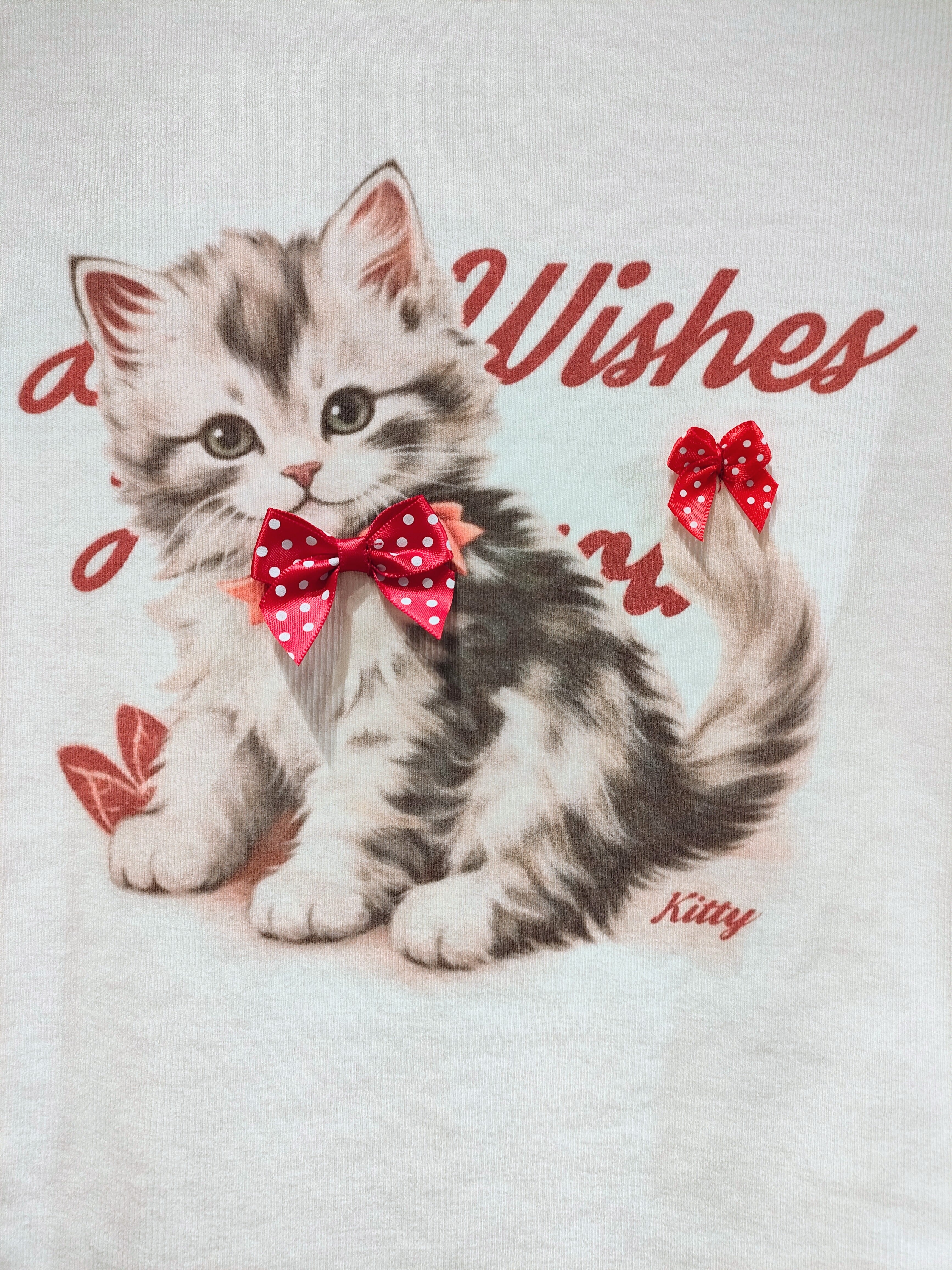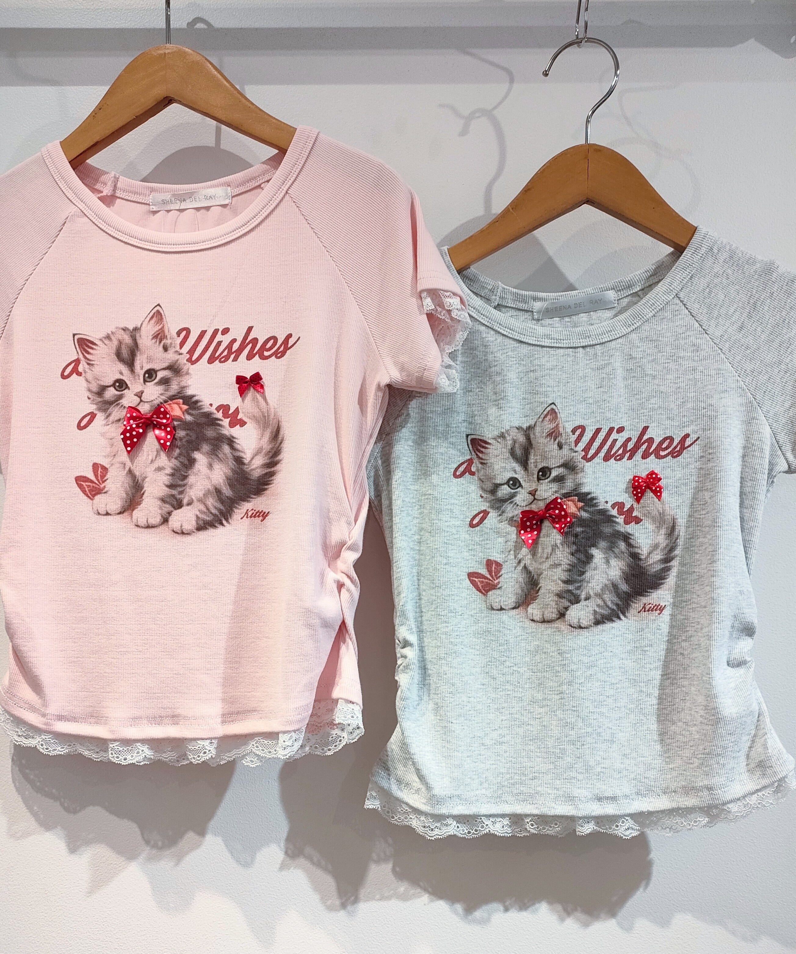 26214(4色)リボン付ネコギャザーリブカットソー