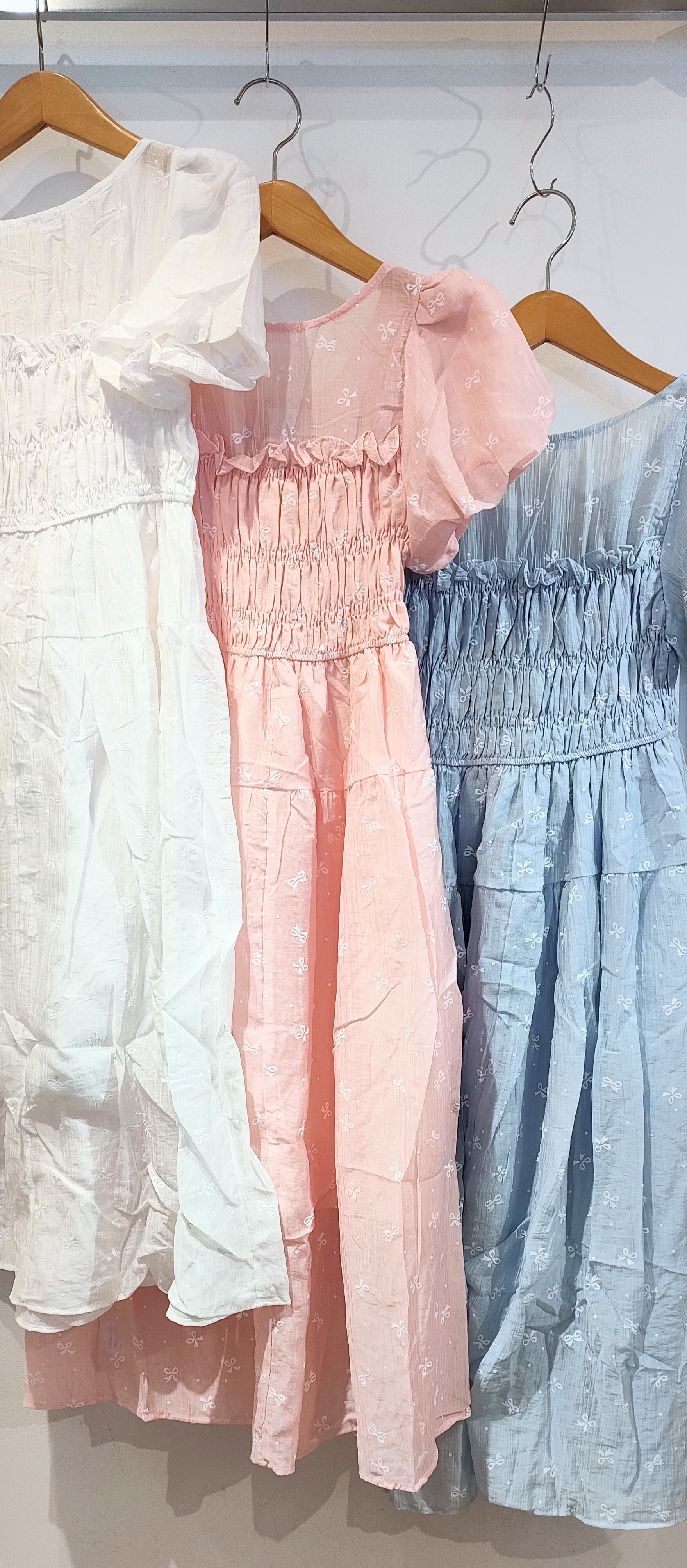 26143(3色)リボン柄シャーリングワンピース